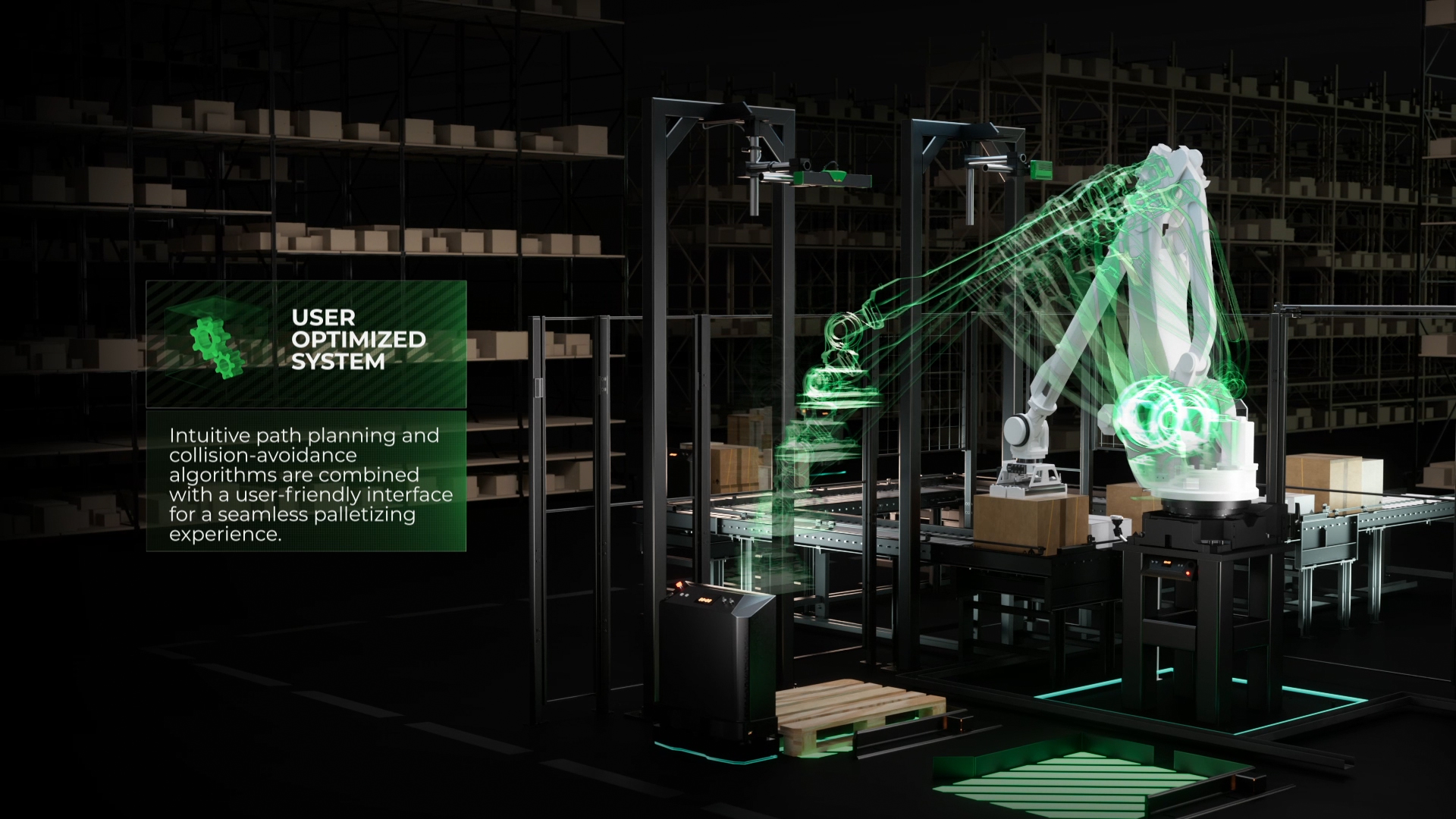 The animation aims to highlight efficiency, precision, and the future of warehouse automation.