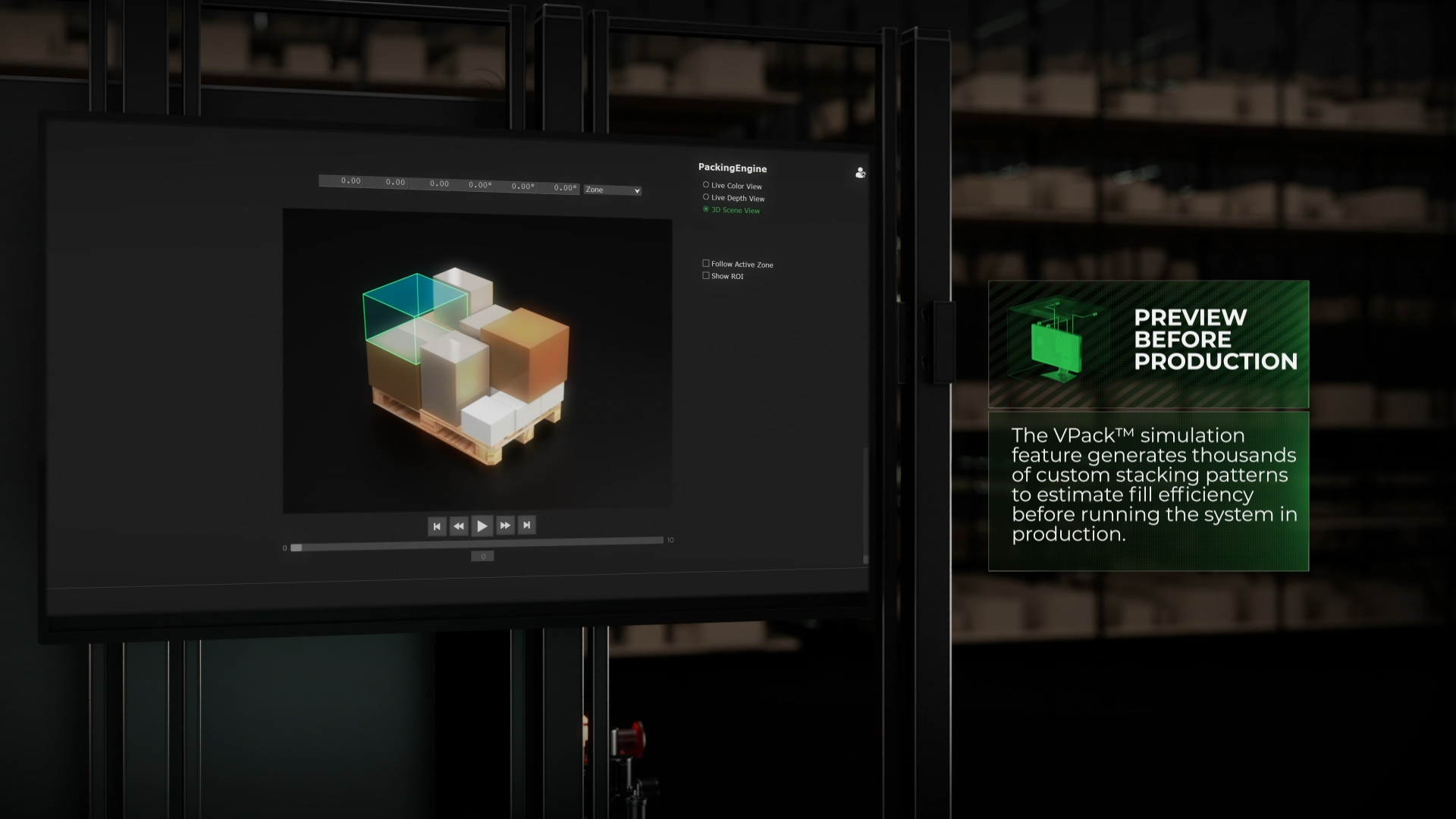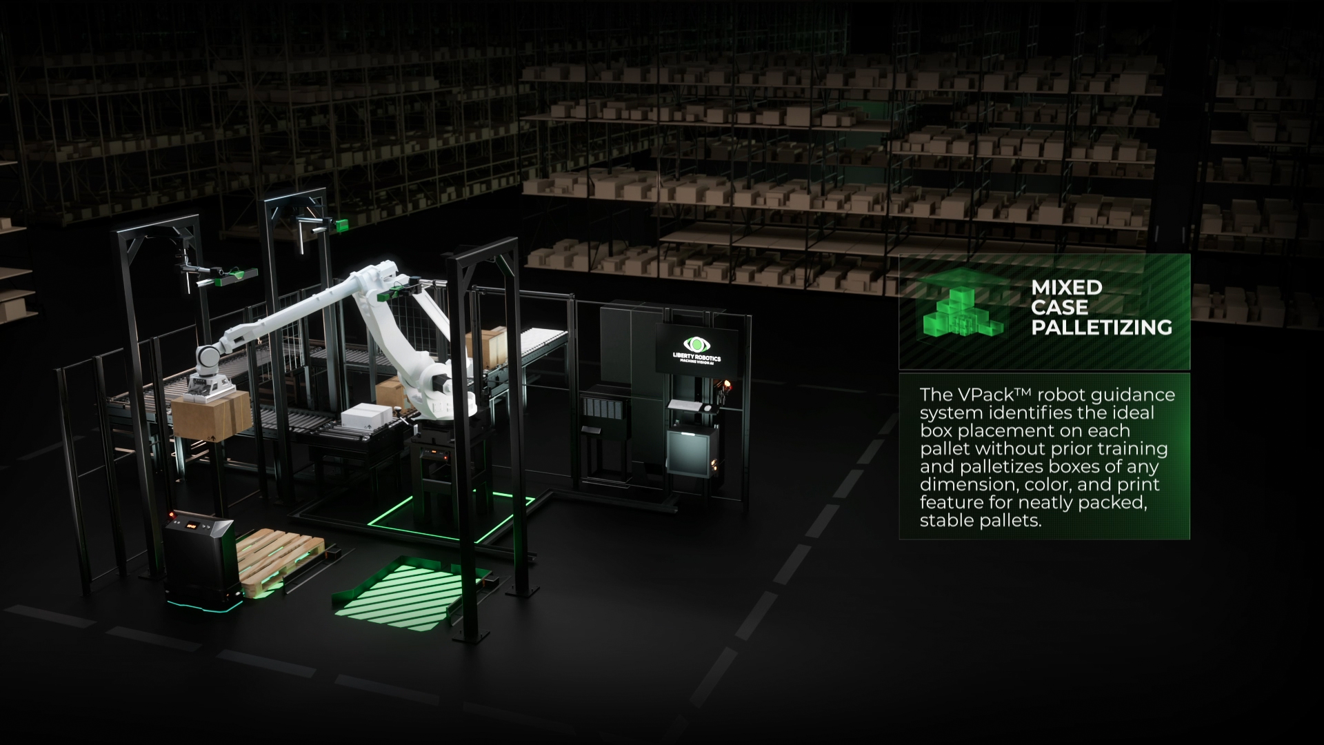 Liberty Reach is a 3D animated visualization of a cutting-edge automated cargo logistics system, showcasing warehouse robotics and intelligent pallet-filling technology in action.